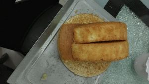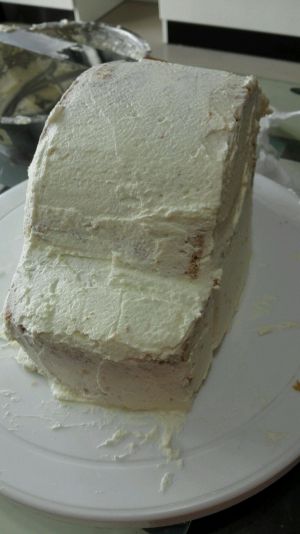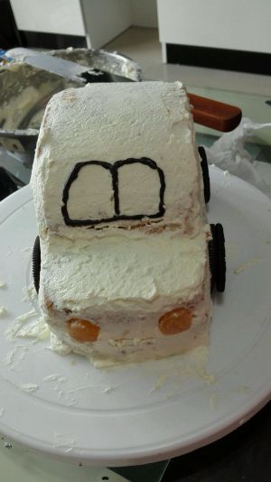 白奶油涂抹车体,因外表还要裱花,这不要涂得很光滑也行了。