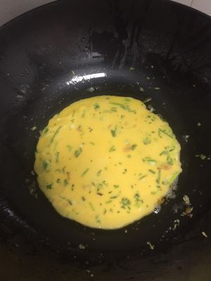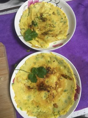 分几次下锅,我这次这量分了三次,太多太厚不好煎,容易糊!下锅前记得再搅拌让葱和香菜均匀分布!
