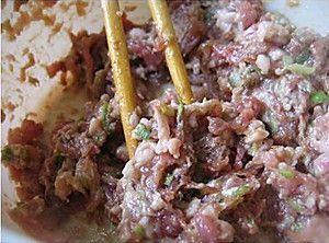 五花肉用搅肉机搅打成蓉,加入盐,鸡精,胡椒粉,老抽,生姜末,葱末,玉米淀粉适量,鸡蛋一个,拌成肉馅