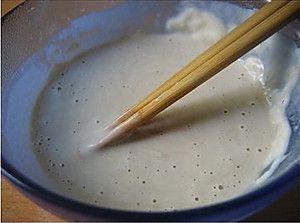 淀粉,鸡蛋,加盐,鸡精,胡椒,和少量水调成面糊,注意要调得比较浓稠一点,否则炸制的时候会挂不上糊