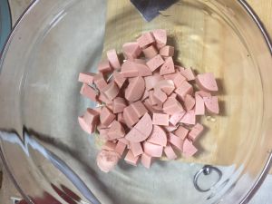 香菇泡发后切丁备用。不喜欢香菇的小伙伴可以不加香菇的~