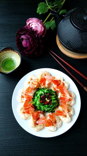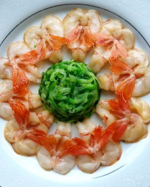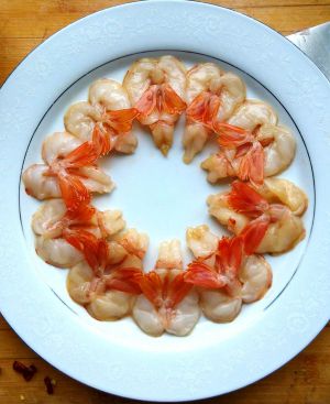 这个做法还可以将虾翻过来摆放,是个心形的虾圈,也很漂亮