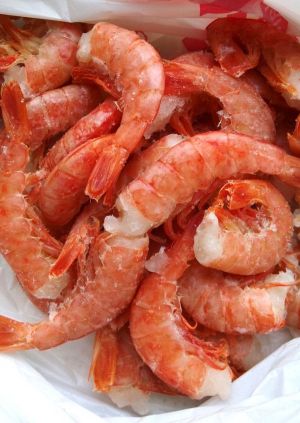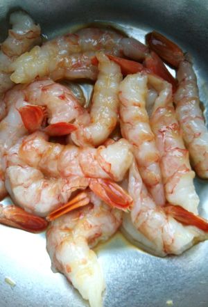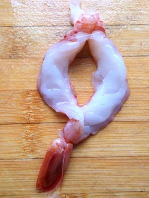 去头的阿根廷红虾,自然解冻后,剥去虾皮,保留尾翼