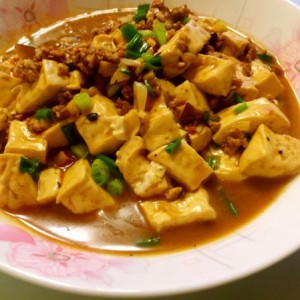 油烧热,倒入一勺豆瓣酱,炒出红油后放入肉末,姜,蒜,葱白,香菇炒匀,然后放入刚做好的调料汁,豆腐,焖五分钟