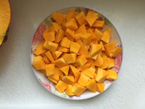 南瓜和胡萝卜分别切成丁