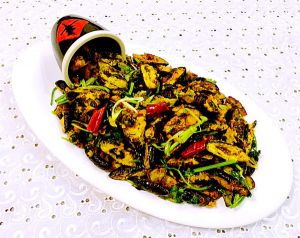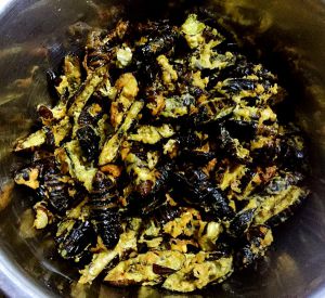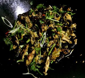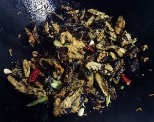 干煸蚕蛹就炒好了(不要炒制时间太长,蚕蛹会面不酥脆影响口感)