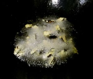 锅中填适量油烧八成热,把蚕蛹放入锅中开始炸,在炸的过程中一定要注意安全防止油烹