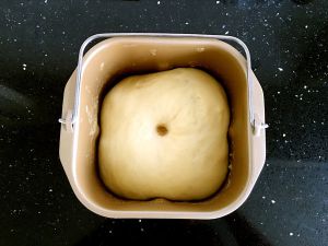 设置发酵程序至两倍大,用手指戳进面团,面团不塌陷不回缩即可。