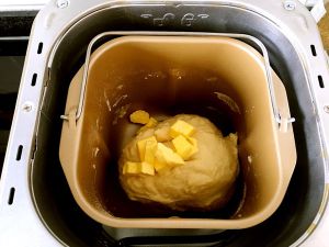 放入室温软化的黄油,在设置两个和面程序。