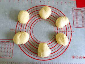 分成六个均等的面团,用保鲜膜包裹松弛20分钟。