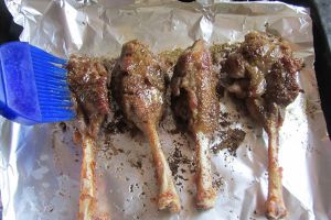 再拿出来翻面, 再抹层油后再撒点混合调料, 同样重复两遍。
