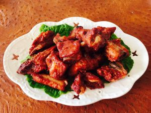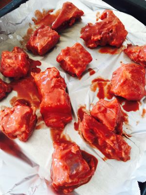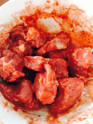 肋排用南乳汁,糖,盐,天鲜蔬腌制过夜