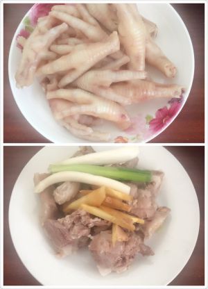 第一、猪小排 鸡爪焯水(把血水去除即可),放入葱姜下锅加冷水开始炖