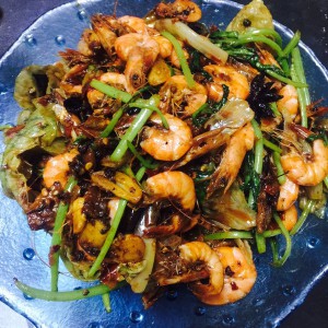 倒入煸好的虾,如果只想吃香辣虾的这时候放些香芹就可以出锅了,如果想吃香锅的放入喜欢的食材炒熟即可