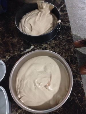 面糊倒入模具,震荡两下