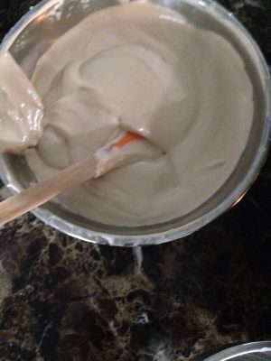 将蛋白,蛋黄糊搅拌均匀