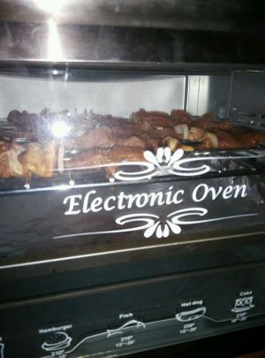 烤箱烤肉功能15分钟,还剩5分钟按暂停拿出来刷一层花生油 翻面刷上油 重新撒上适量的孜然粉(喜欢辣的可以加上一层辣椒粉)重新放进去烤箱停了就可以拿出来吃了