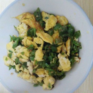 鸡蛋下锅煎熟捞出备用,千万不要煎过了,要嫰。