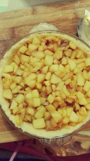 倒入熬煮好的苹果馅