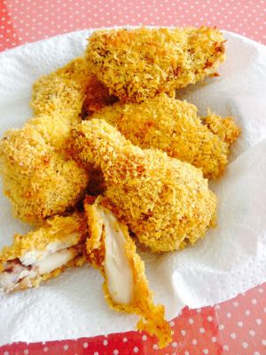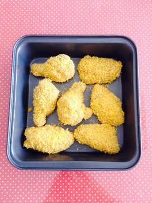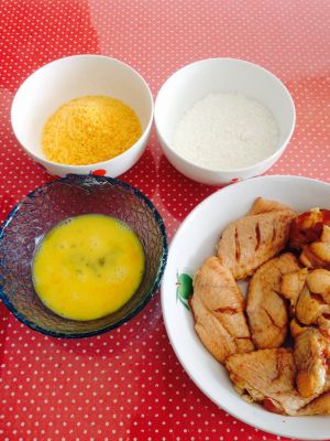 将腌好的鸡翅水分吸干,后依次包裹上面粉-鸡蛋液-面包糠
