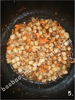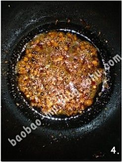 锅内倒油,放入火锅底料和姜末,小火熬出红油