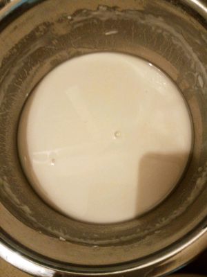 1:两勺面粉加点凉水稍微加一点盐,搅拌稍微稠一点,切记面疙瘩全部搅碎。