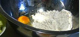 鸡蛋和面粉里加入适量清水,用筷子朝一个方向搅成面糊,醒二十分钟