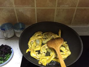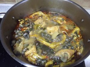 炒的酸笋均匀都上色了,关火,全部螺倒进炖锅内