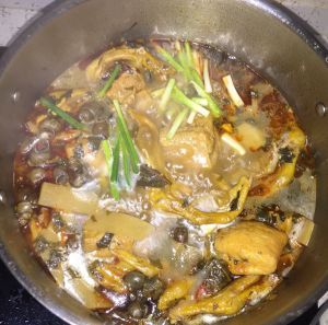 小火炖40分钟左右,至鸭脚酥烂即可,下点葱段或香菜之类点缀下,关火。开锅即可味道香鲜,闷上几个小时更加入味
