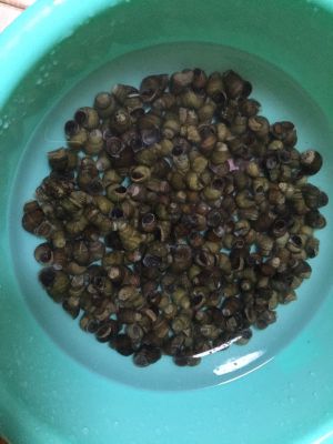 石螺买的时候让老板帮忙把屁股车掉,回来清水养着去泥