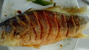 锅中放入油,油热后放入葱姜蒜爆香,然后加入豆瓣酱,炒一会再加入水,少量盐,鸡精。水开后放入鱼。中火炖10分钟,然后大火收汁。炖的过程中可以轻轻给鱼翻个身。