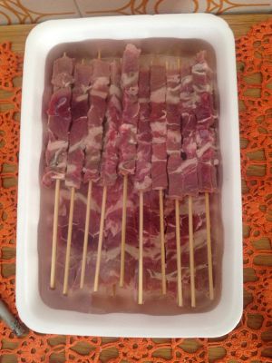 现买肉串泡水置换血水。买到的肉血水比较多。