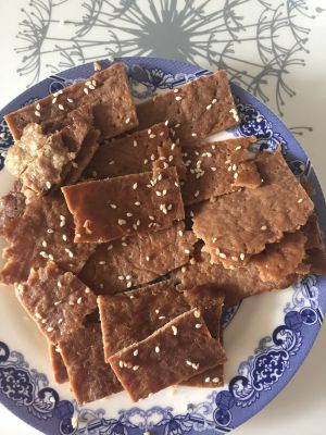 擀面杖擀平 刷蜂蜜 撒芝麻 上下火180度正面反面各二十分钟
