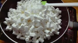 倒入棉花糖,炒到融化