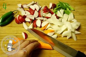 将晾干水份的蔬菜切成大小合适的滚刀块