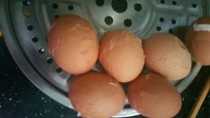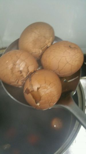 鸡蛋用凉水冲凉磕碎,这样可以更好的入味,还有好看的花纹。
