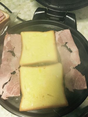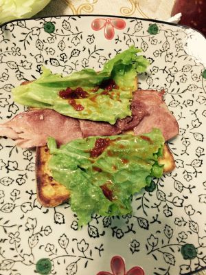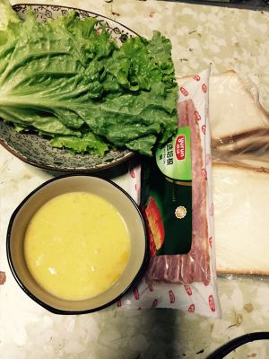 面包片两面沾上鸡蛋,放锅里煎,再放入培根,煎三分钟左右即可。