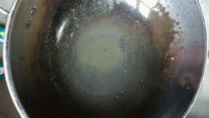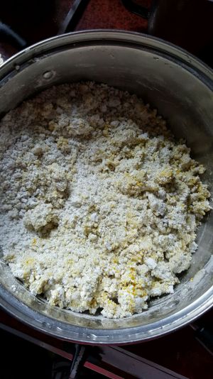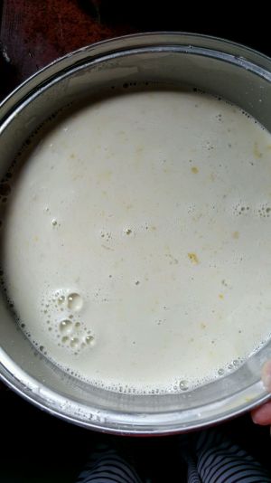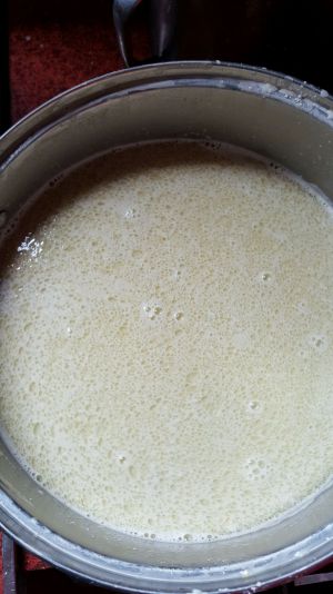 加入两碗的温水,地瓜粉跟温水的量是1:1