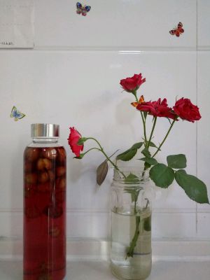 一个月后开瓶,颜色艳丽,味道爽口。同时体验视觉与味觉的美好。。。。