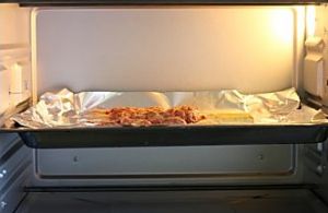 烤箱预热, 上下火/风机,上火180度,下火200度,中层,烤15分钟。