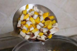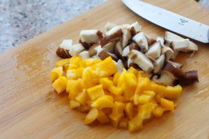 彩椒和香菇洗干净切成丁