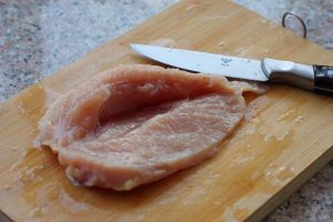 鸡胸洗干净,从侧面切开