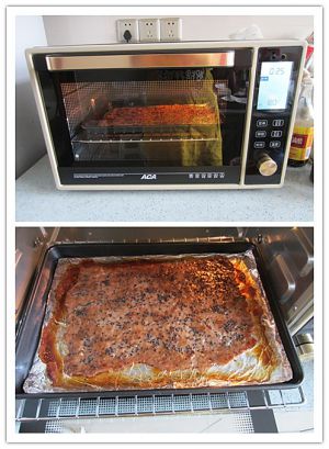 9、10、放到烤箱中180度烤15分钟。拿出来翻个面再刷蜂蜜撒芝麻。