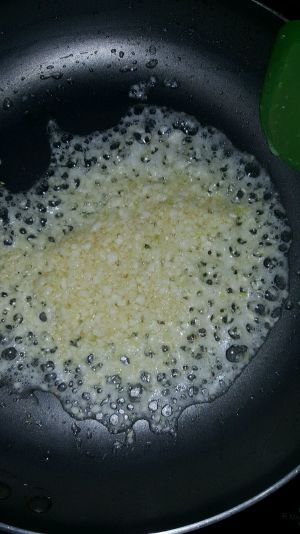 放入蒜末爆香,少放点黄油,可以炒的时候再加点橄榄油,不喜黄油的直接用橄榄油爆香就好