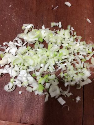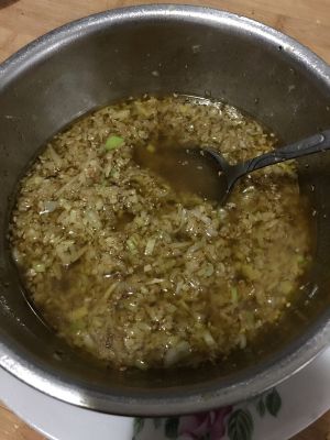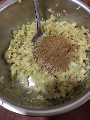 放入盐(因为要夹馍,盐放重了一点,根据个人口味),胡椒粉,芝麻,葱末