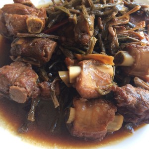 烧到排骨软烂入味,锅中水量可依咸淡机动。最后调入鸡精出锅。