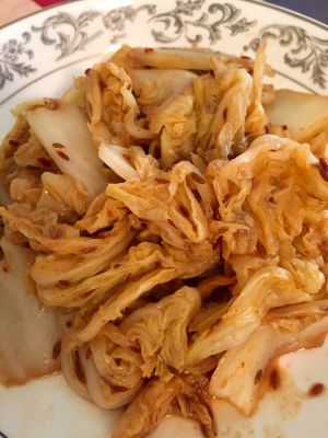 热油,将白菜下锅,然后下老干妈,蚝油各一勺,最后放适量孜然!出锅~