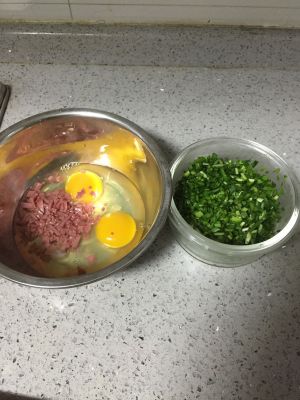 所有用料搅拌均匀加少许胡椒粉与盐入平底锅。小火