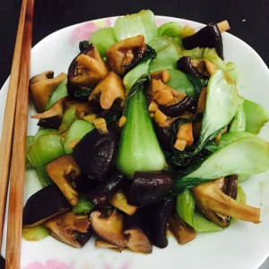 香菇熟透后,加入油菜,继续翻炒,加点盐(前面加了酱油了,盐少一点),然后爱加鸡精加鸡精,爱加味精加味精,翻炒半分钟,起锅!