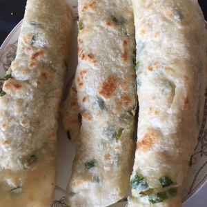 然后用擀面杖擀成圆形,平底锅热了后放一点油,开中火放入油饼,一两秒后翻面,让另一面也沾上油。